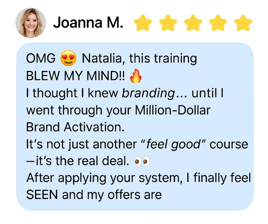Now, inside the Million-Dollar Brand Activation™, I'm giving you the exact step-by-step method to activate your unstoppable brand, faster, easier, and with full confidence.